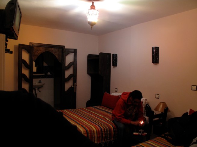 We spent the night in Bouznika and the next morning we were off to Chefchaouen, a city in the north of Morocco. Chefchaouen is a popular tourist destination known for its beautiful handicrafts but is also renowned for its kif. Kahi and I wanted to go on a tour of the fields in the surrounding countryside but it was raining cats and dogs. One of the parking attendants helped us find a nice place to stay fin the medina and watched our car during the night, for a small fee of course. Since it was raining we didn’t get to experience the town as much as we would have liked. The power went out in the city while we were eating dinner and it was difficult finding our way back to the hotel in the dark allies of the medina. Since it was still pouring rain the morning we decided to head back to Bouzinika so that we could spend our last couple of days with our friends.