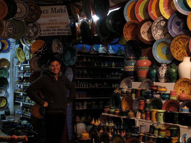 Moroccan pottery, intricately painted and gorgeous colors. I wanted to buy it all, pack it up and take it home with me.