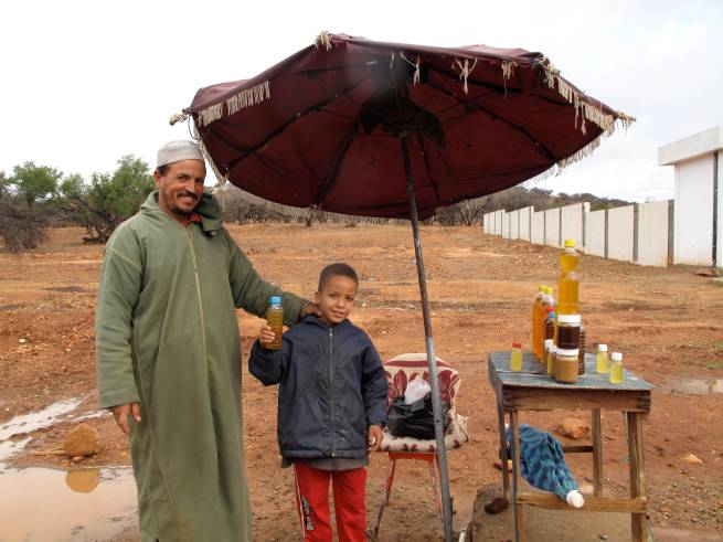 Argon butter and oil from the fruits of the argon trees. Argon butter is similar to peanut butter but has a rich nutty flavor. I love the stuff. The oil is extracted from berries collected from the shit of goats and camels after they are digested and pooped out.