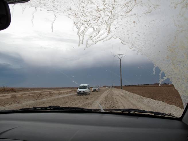 All the rain turned the road into a swampy muddy mess and our entire car got covered in mud.