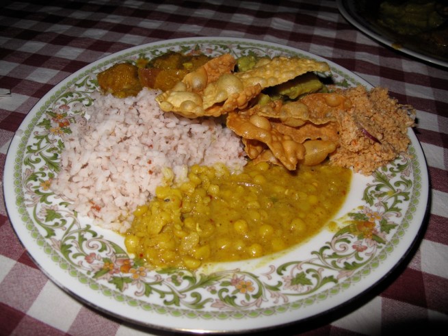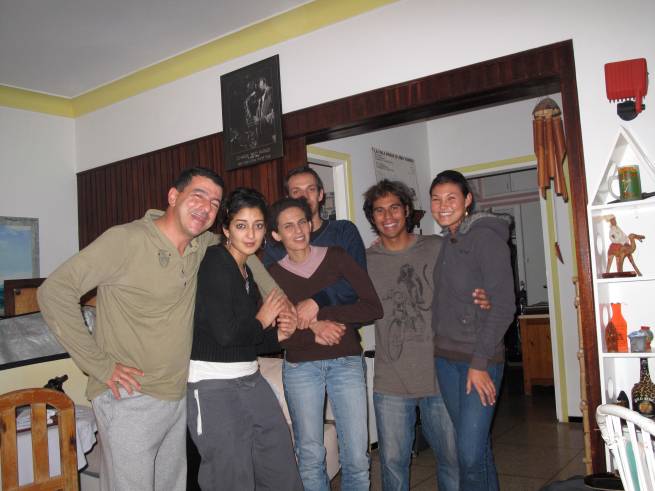 Karim, Sylvan, Kahi and the Fiz feasting on Friday couscous in our humble room