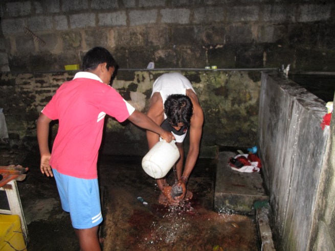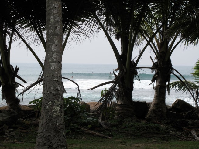 It had just started to rain when we were pulling into Insuamme. This was the first big rain in a LONG time and the debris that had collected over the months began it journey down the river beds into the ocean. As soon as we got there we unloaded our bags and headed straight for the surf. The surf was fun but challenging. The current was very strong and after catching a wave it was almost impossible to paddle back out. You would have to paddle in, run back up the beach, and paddle back out. Talk about exhausting! There was a brown waterfall that began flowing down the cliff and into the bay and a rim of chocolate brown pooh water formed along the beach. There was no way to avoid it when getting out of the water. All you could do was keep your head above the water and keep your mouth shut. it was nasty!