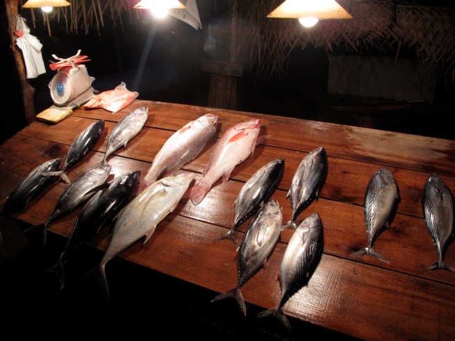 Fresh seafood spread. Pick what you want and they grill it up.