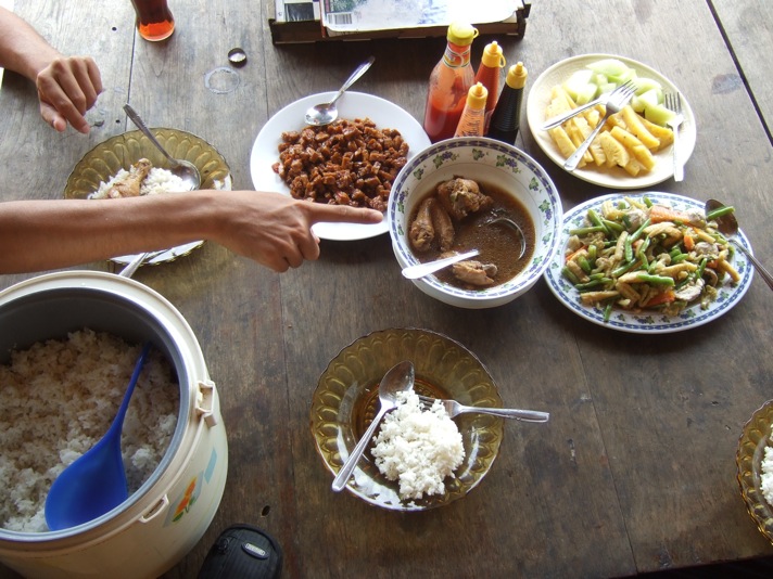 Kiwi Nick’s was run by a Indonesian family and all meals were included for 150,000 IDR ($15) a night. I thought the food was really good. We always had rice with one or two veggie dishes and some sort of protein whether it be fish, eggs, or chicken. Sometimes the chicken was pretty dry and it was like eating chicken jerky. Breakfast was pretty good too. You had a choice of jaffles with bananas or eggs and toast. Jaffles are similar to creeps and were really tasty when you smothered them with chocolate condensed milk.