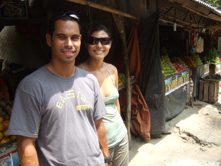 I really wanted to try some of the local fruit, so we stopped at a roadside fruit market. They had all sorts of fruit, some that I’ve never seen and others that were quite common. We bought some tangerines, these purple berry things that were about the size of large cherries, some things we thought were kiwis, and mountain apple look a likes called jambu air.