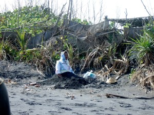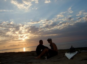 The swell wasn’t hitting the spot but we did see this funny guy buried in the sand. The sight was hilarious. We were perplexed, why is this guy buried like that, but just yesterday we saw three other guys buried in the sand the same way. We figure they do it to keep cool since it’s so fricken hot out here.