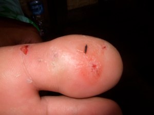 The next day my toe was in pain and I had to get the last two out. With surgical tweezers, some picking, and Louises help we got the last guy out. I think. Urchin spines have been known to be lodged deep inside and then come to the surface months later when the body excretes the spine itself. I’ll keep you updated.