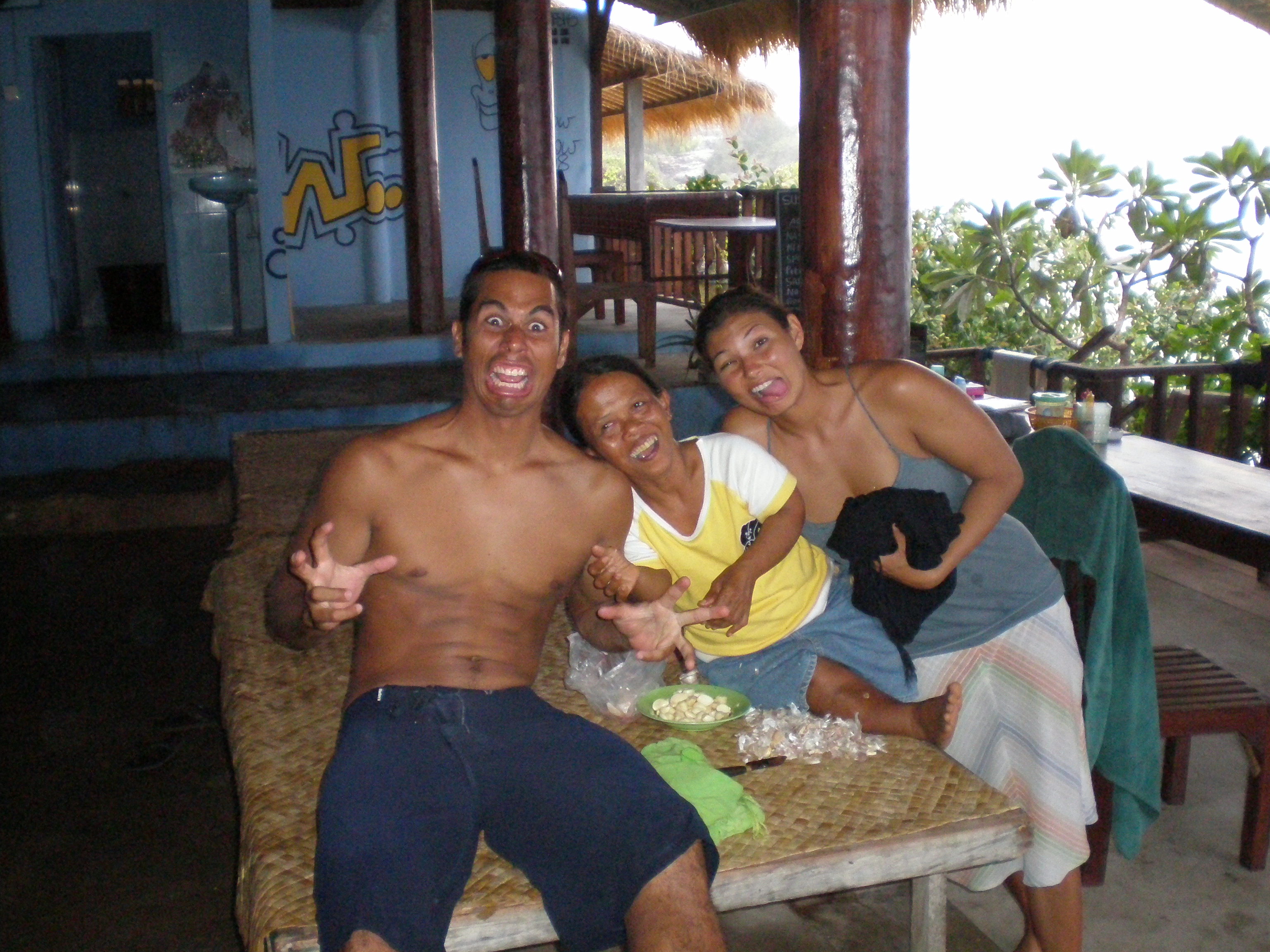 At Susies Warung we made great friends with a French guy named Roman, a cali-bro named Tyler, and a NY gangsta named Jazz. Good cats they were, Tyler crashed his moped bad (gotta look both ways twice here) and his boys took care of him. Tylers ok and hopefully will be back in the water soon.