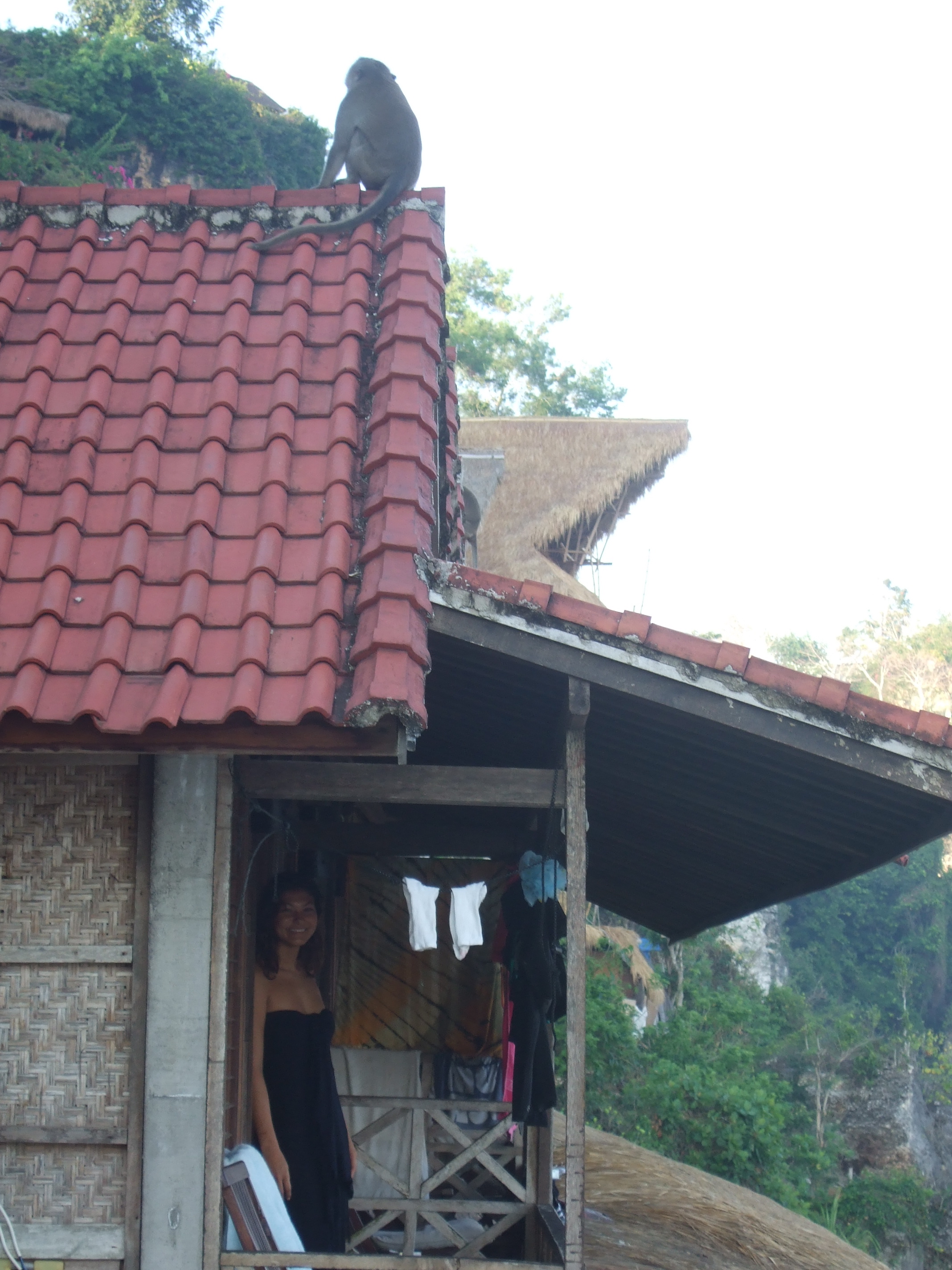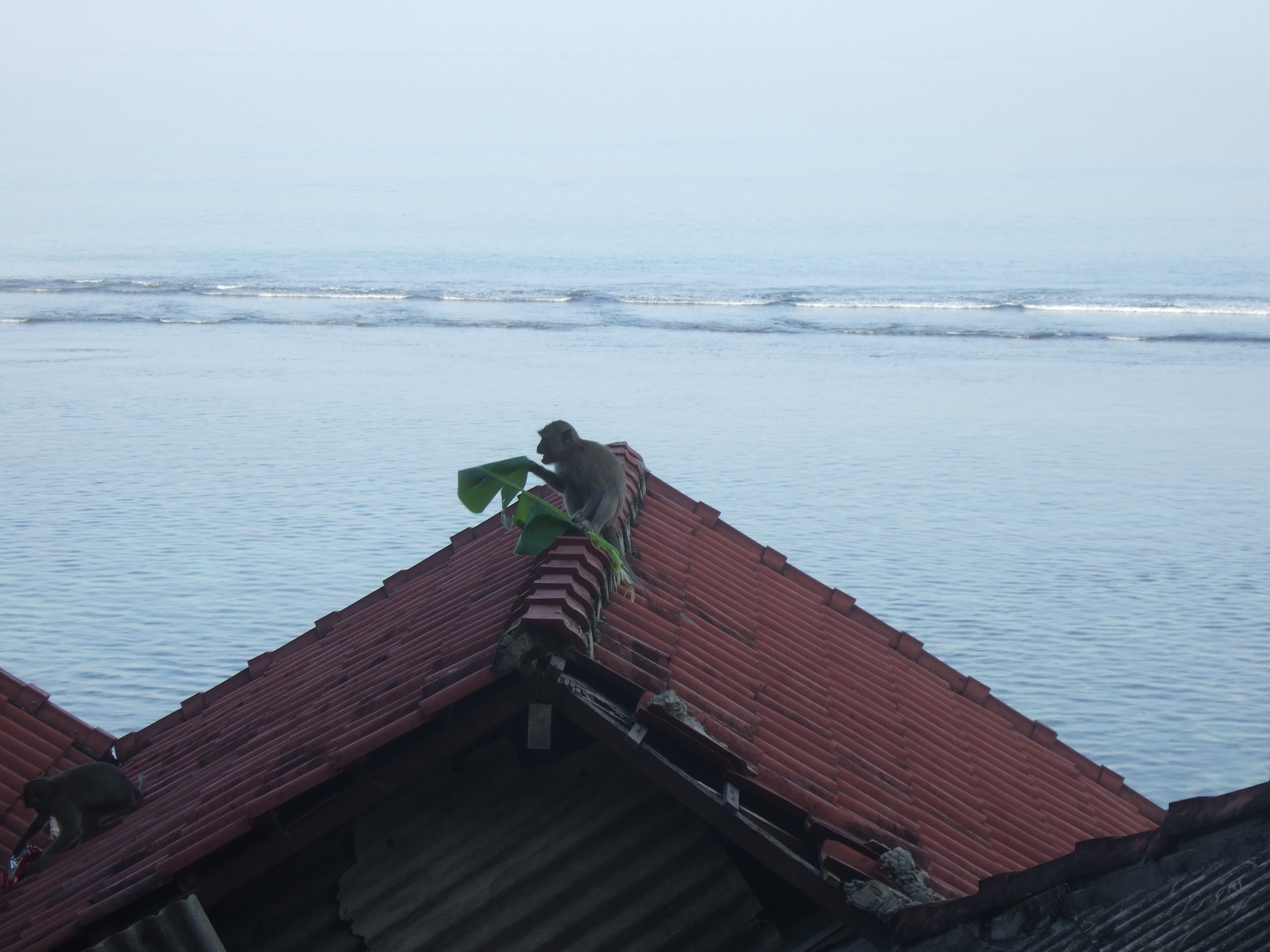 Two times while in Bingin we were awaken by monkeys. The monkeys inhabit the Uluwatu cliffs and come down into Bingin every once in a while. They steal stuff and eat up the gardens. They’re kind of pests but they were definetly entertaining.