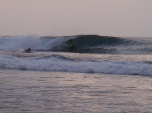 I was saying earlier in the month that I had never gotten vana (sea urchins) in my foot and of course, this day I got a bunch. The balinese guys get most of the waves and if you are lucky you get the leftovers. Luckily I look kinda balinese, so all the other tourists were confused and took me as one of the Balinese. But the balinese weren’t fooled. On one that a balinese guy missed, I turned and went, but then another balinese guy turned down the line and went as well. As I was in the barrel I saw him drop in and crumble my barrel. I was sent to the bottom and onto the reef. My foot hit and I came up with 5 spines and a good slice in my big toe. I wasn’t pissed.