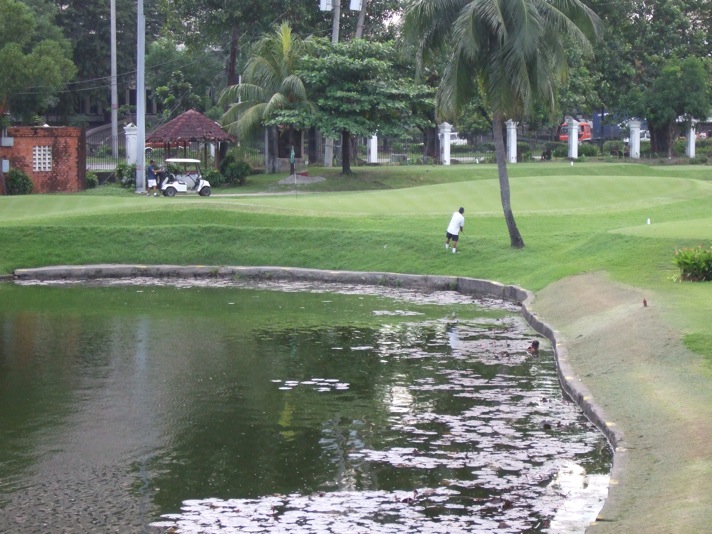 One of the locals going for a leisurely swim in the pond at the golf course while looking for balls