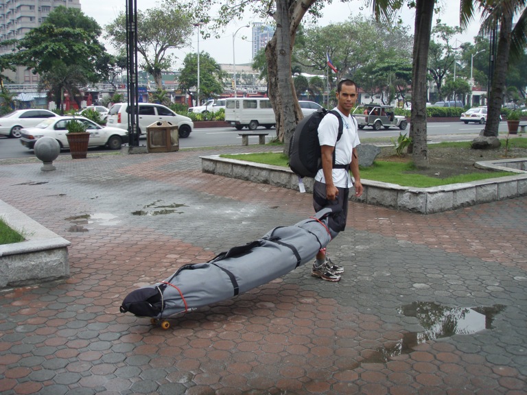 Rolling thorugh the streets of Manila, the skateboard contraption sure is coming in handy