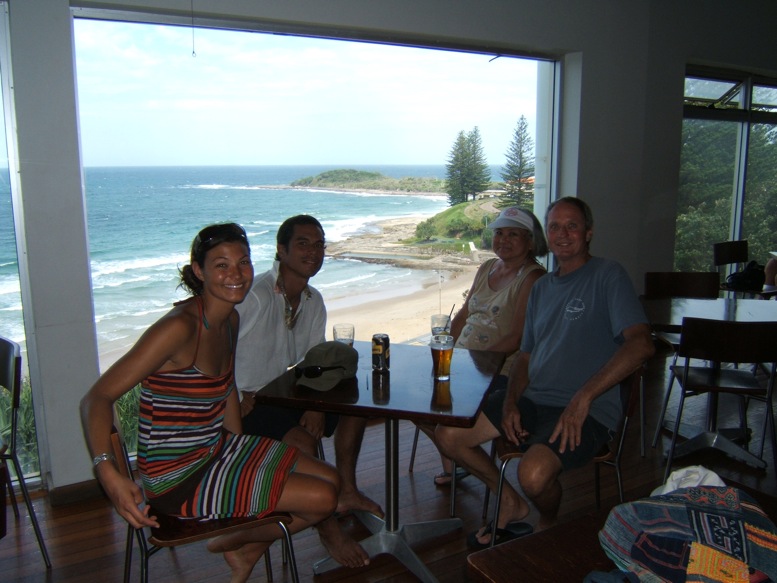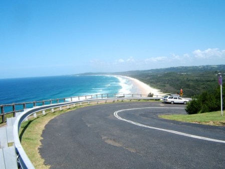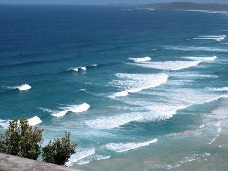 Another hour up the coast and we were at Byron Bay, the backpacker headquaters of Australia. There are two bays back to back here in Byron Bay, if one is on shore the other is usually off shore and surfable. We surfed some fun beachies and again there were tons of dolphins swimming every where. They’re pretty cool to surf with but kind of scary when they’re catching a wave and you’re trying to duck dive.