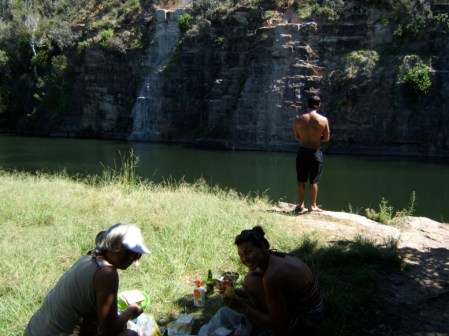 Eating lunch at the Blue Pools, fresh water pools created by an old quarry
