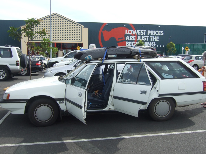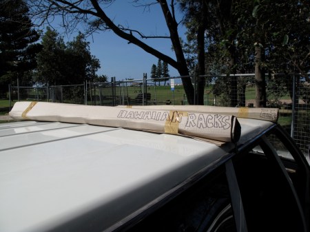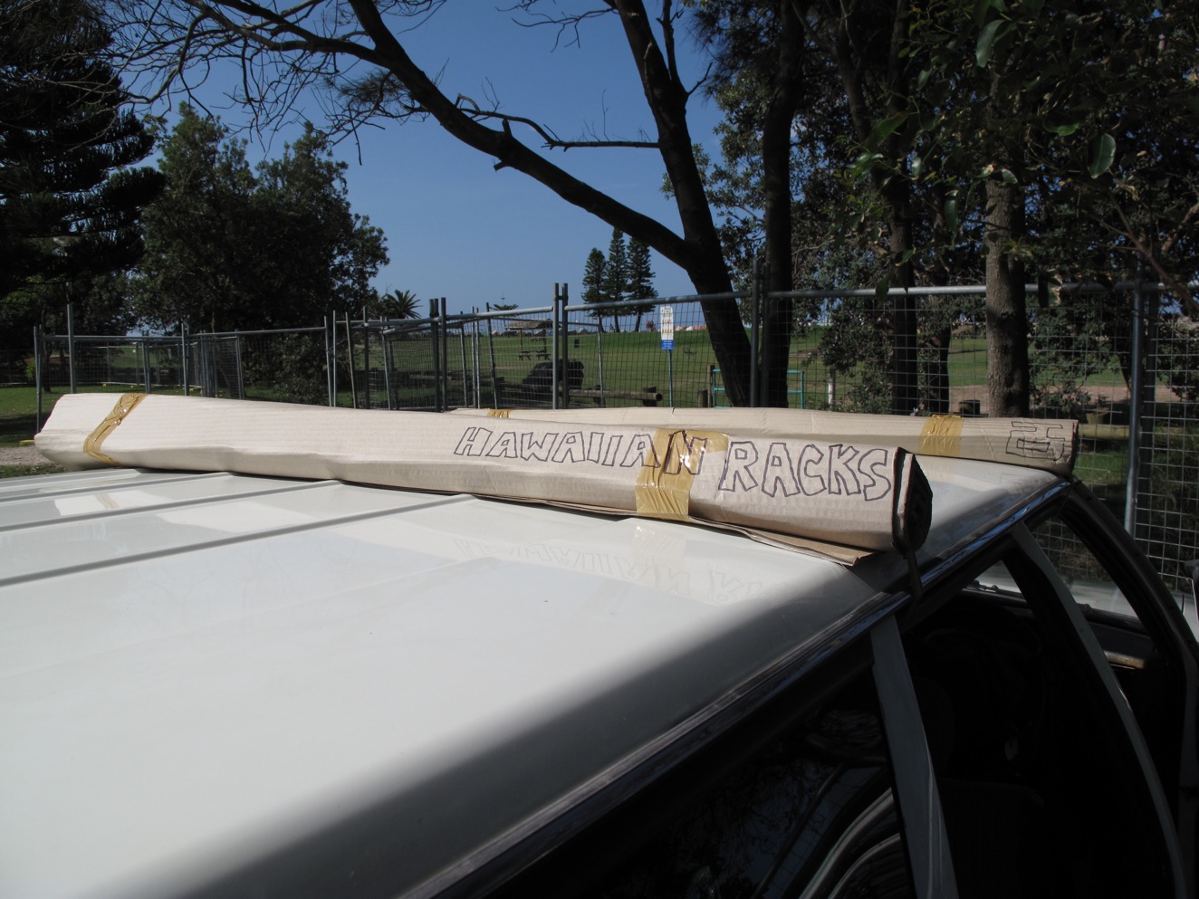 It was almost exactly a year ago when Kahi and I last traveled to Australia and did a road trip from the Gold Coast to Sydney. It was a beautiful drive and we had so much fun, I was really excited to take my parents along and show them around. Our car was quite packed so we decided to put the surfboards on the roof to make things a little more comfortable inside. Our original plan was to buy some pipe insulation and build some sort of make-shift roof rack contraption. The hardware store we stopped at didn’t carry pipe insulation so we came up with a brilliant plan. There were tons of cardboard boxes at the store and we were able to make some “Hawaiian Racks.” Check them out! We just rolled up the cardboard and secured them with some tape and tie downs. They were cherry!