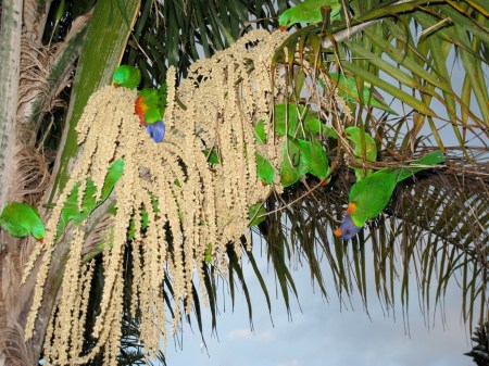 At dawn and dusk all of these pretty little birds called lorikeets would congregate together in the trees and make tons of racket. If you stood under the tree, put your tent under a tree or parked your car under a tree, guaranteed you would get pooped on.