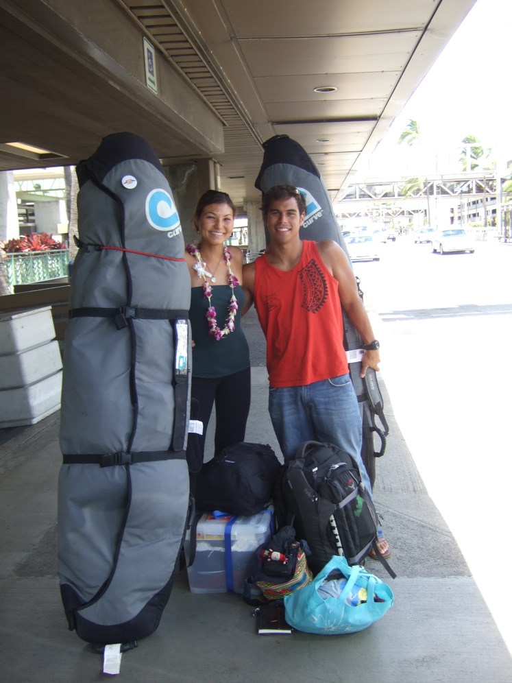 Now back at the airport we once again felt we’d be alright. When checking in in Hawaii, United Airlines was going to charge us for our boards. We explained that Air New Zealand had told us we wouldn’t be charged as long as we were underweight. Our tickets were not the normal travelers ticket, these were Round the World tickets that allowed for excess baggage. We convinced United in Hawaii to speak to Air New Zealand which they did. The tense moments leading up to the big boss (Ben) coming out and Air New Zealand concluded that we would not be charged for our surfboards as long as we were under our overall allocated weight. A huge sigh was let out and in order to avoid this type of drama again a note was put on our tickets going forward letting all airlines know that this has been decided and we felt confident.