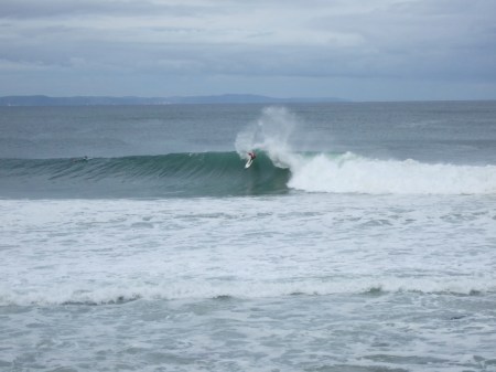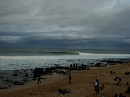 But the best part was that on the biggest waves at Supertubes (the section closed off to the public / contest-zone), the contestants would be catching the waves all the way through our section giving us the best seats in the house. We saw Dane Reynolds 10 point ride and then watched Slater in the next heat get 4 waves over 9 points. We all thought he got underscored. He should have had four 10’s. I had to duckdive to get out of their waves a couple of times, and you could even catch the same waves that they were on earlier up the point if they had fallen or gotten off prior to it getting to you. In the water is the best place to watch the contest in my opinion.