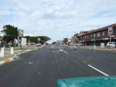 You might have seen it in the news, how South African labourers were striking. Here in Jbay they striked by throwing trash in the streets and lighting tires on fire. I though it was a pretty stupid way to make a statement. They ended up having to clean it up anyways. One step forward, two steps back.