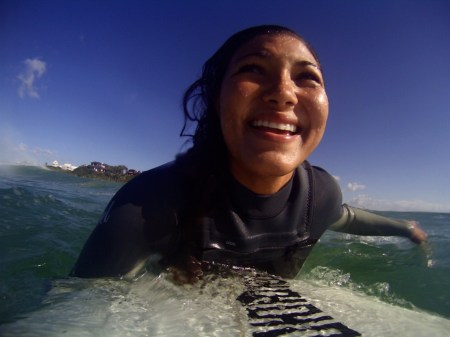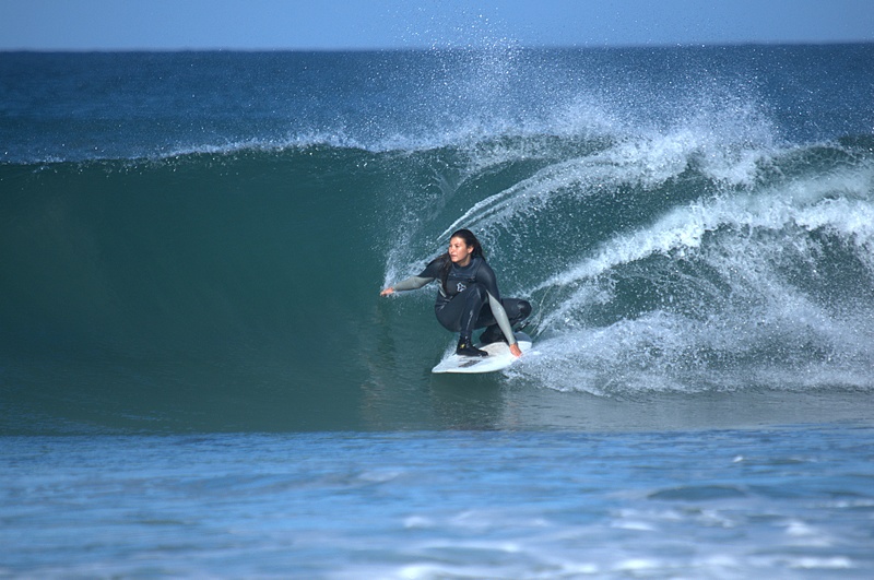 Louise has been sitting wide and continues to catch the bombs that everyone ends up being too deep for. The constant steep hollow rights have honed her pigdog stance. She’s been getting barreled and all the photogs are snapping pics of her. We’ll come out of the water or see other surfers in town and they’ll just comment on how graceful she is in the water. I’m like, “what about me?”