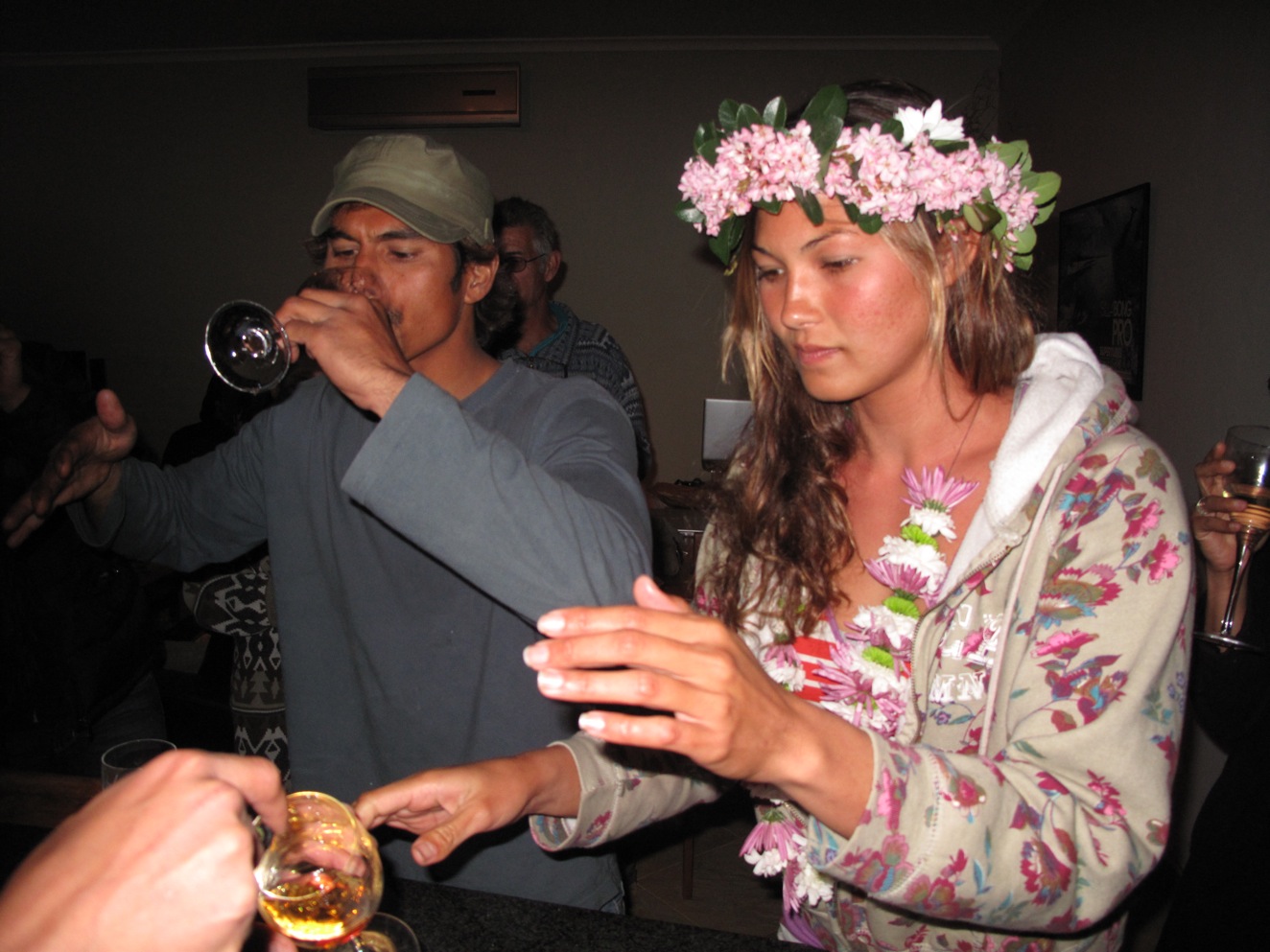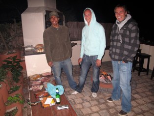 Later that evening we invited a few friends over for a brai (BBQ). We had Kim and Todd over plus another couple from Tahiti, Poema and Noah, and the crew from up stairs Roy, Ken, Kurt and Noma, Herbie and his wife. Kim and Poema made me a beautiful lei and haku lei and for the evening I felt like I was back in Hawaii. We proceeded to stuff ourselves with delicious food and tasty deserts complimented with wine, beer, champagne and shots of Brandy and Johnny Walker. I had such an awesome time and would like to send out many many thank you’s to everyone who helped me celebrate.