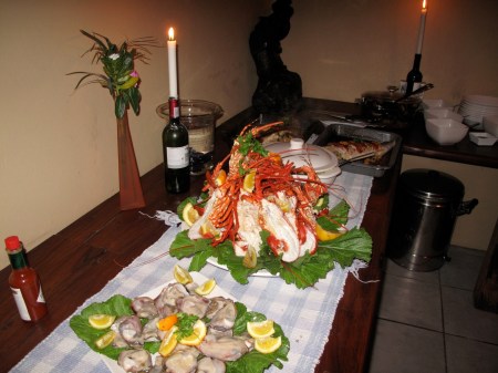 Later that evening we ran into some locals selling their daily catch, a big bag of live lobsters (or crayfish as they call them here). We bought a few and took them to the Sugar Loaf across the street where we were going to eat dinner. Their chef a the time, Rocko, is an amazing chef. He cooked us up a seafood feast including oysters, lobster, two types of fish, and mussels. The meal was one of the best we’ve had the whole time in South Africa. Needless to say we stuffed ourselves and went to bed very happy. Best part, it only cost about $8US!