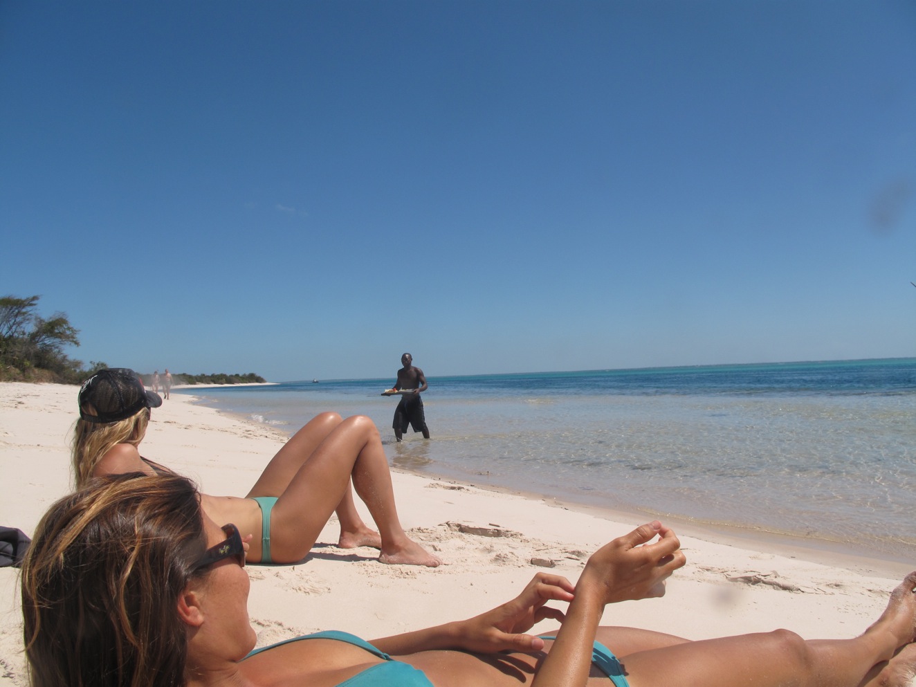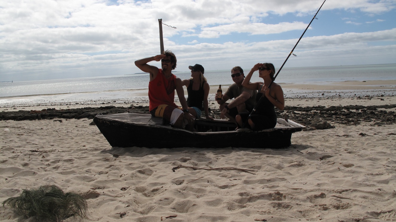 Collectively the islands were called the Bazaruto Archipelago. We relaxed in this area for 3 days and the highlight was the trip to Margaruqe Island. We charted a boat for the day. Just Todd, Kim, Loiuse and I. This boat was made in some guys backyard and would no way be sea worthy in the US, but hey this was Mozambique and all went well.
