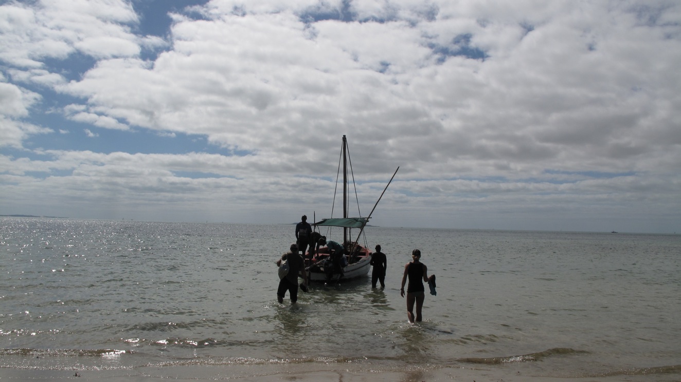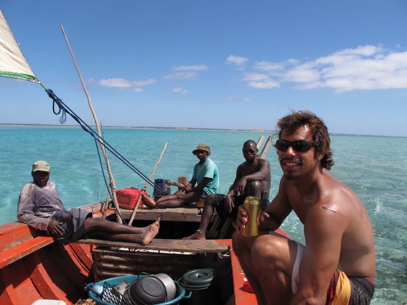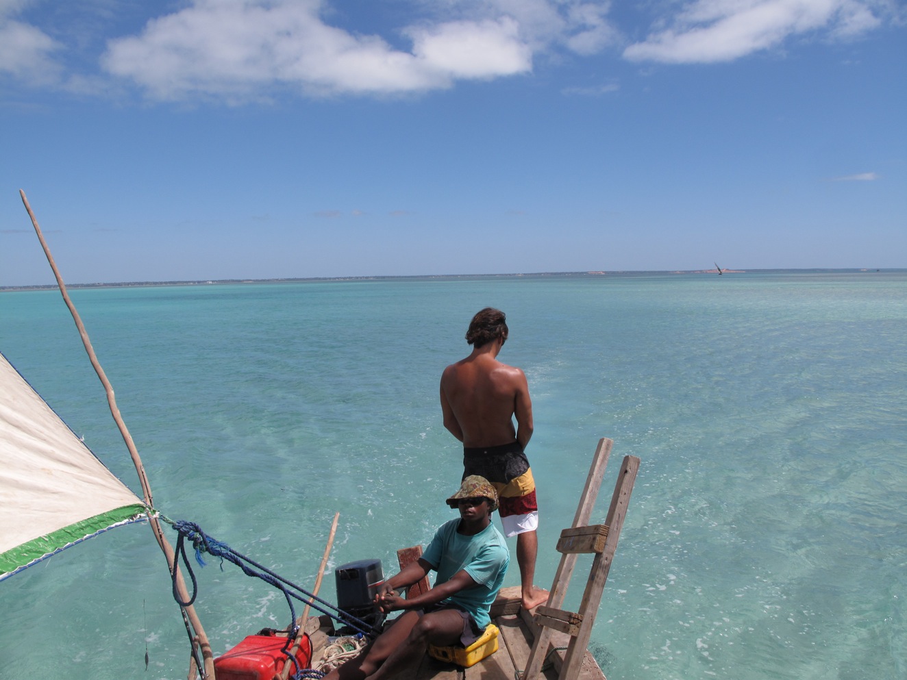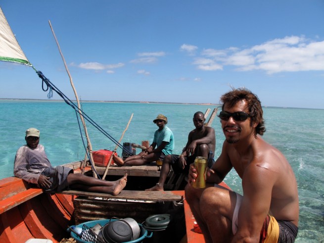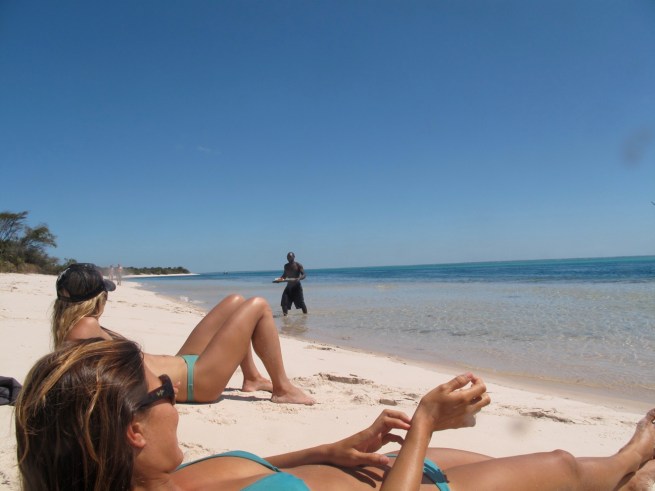 The beauty was stunning and due to its isolation, very few boats and tourists were out to enjoy it. As we got close to the island of our choice (Margaruque) they lit up the onboard Braai/BBQ. This Braai was just a corrugated metal box filled with ash at the back of the boat. They stacked some fresh charcoal, detached the gas hose to the engines, sprayed a bunch on the coals, reattached the hose and then lit it up. No OSHA has yet been through Mozambique. Their technique worked although I wouldn’t say it was flawless, as the fire roared within a foot of the gas tanks we moved ourselves further up toward the bow of the boat.
