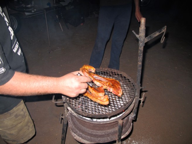 We had a fun introduction but when the saw what we were cooking they said, “What is that shit? Looks like vomit. Throw it away.” Slightly taken aback we responded that that was all we had to eat. They then told us to come with them to their car. Inside the back of the truck was a giant electric cooler filled with steak, lamb, sausage (boewoers) and BEEEEEEEEEER!!!!!!