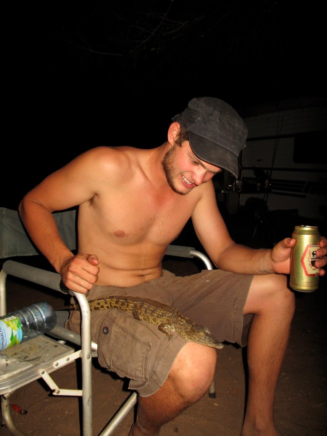 As we drank beer and enjoyed other things they offered the night turned into one of those one in a lifetime encounters. We spent the night dancing, singing, chasing and catching wildlife (crocodiles and scorpions), eating the best food, trying to pry the secret recipe of the Rookensmiths Drywoers, collecting firewood, hallucinating, and everything else into the late. Cameron didn’t believe us when we told him we saw a crocodile but we told him we really did and where we saw it. He disappeared for about an hour but when he came back he did with a baby croc.