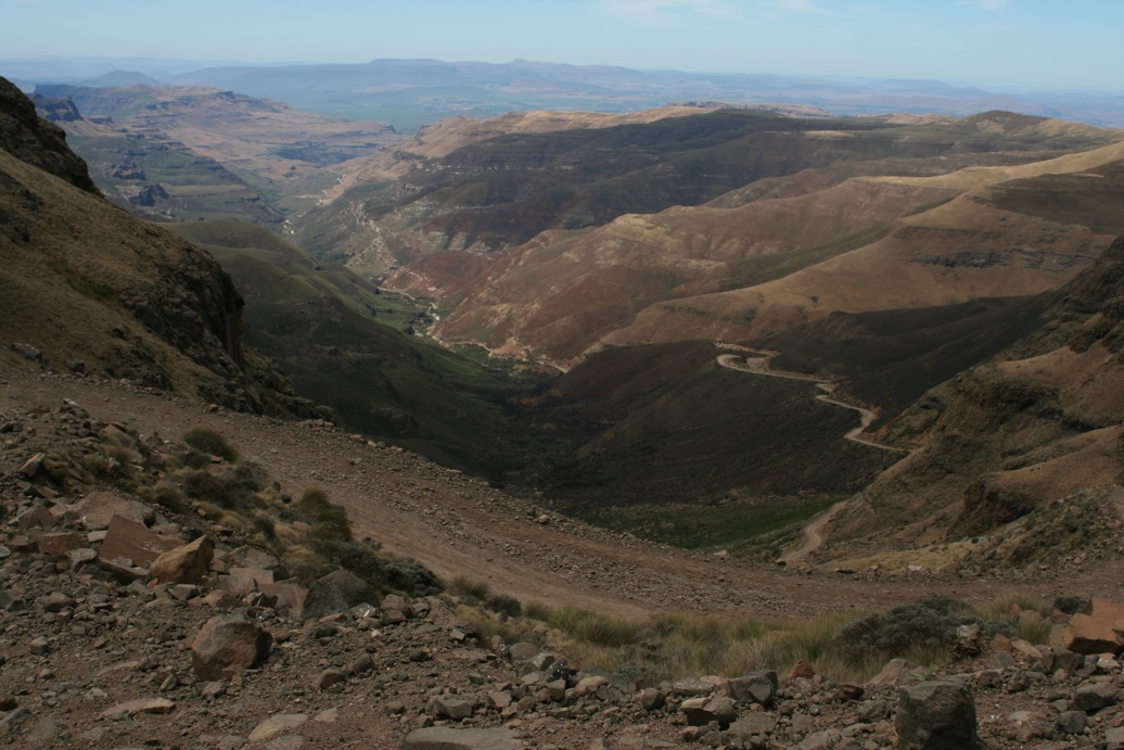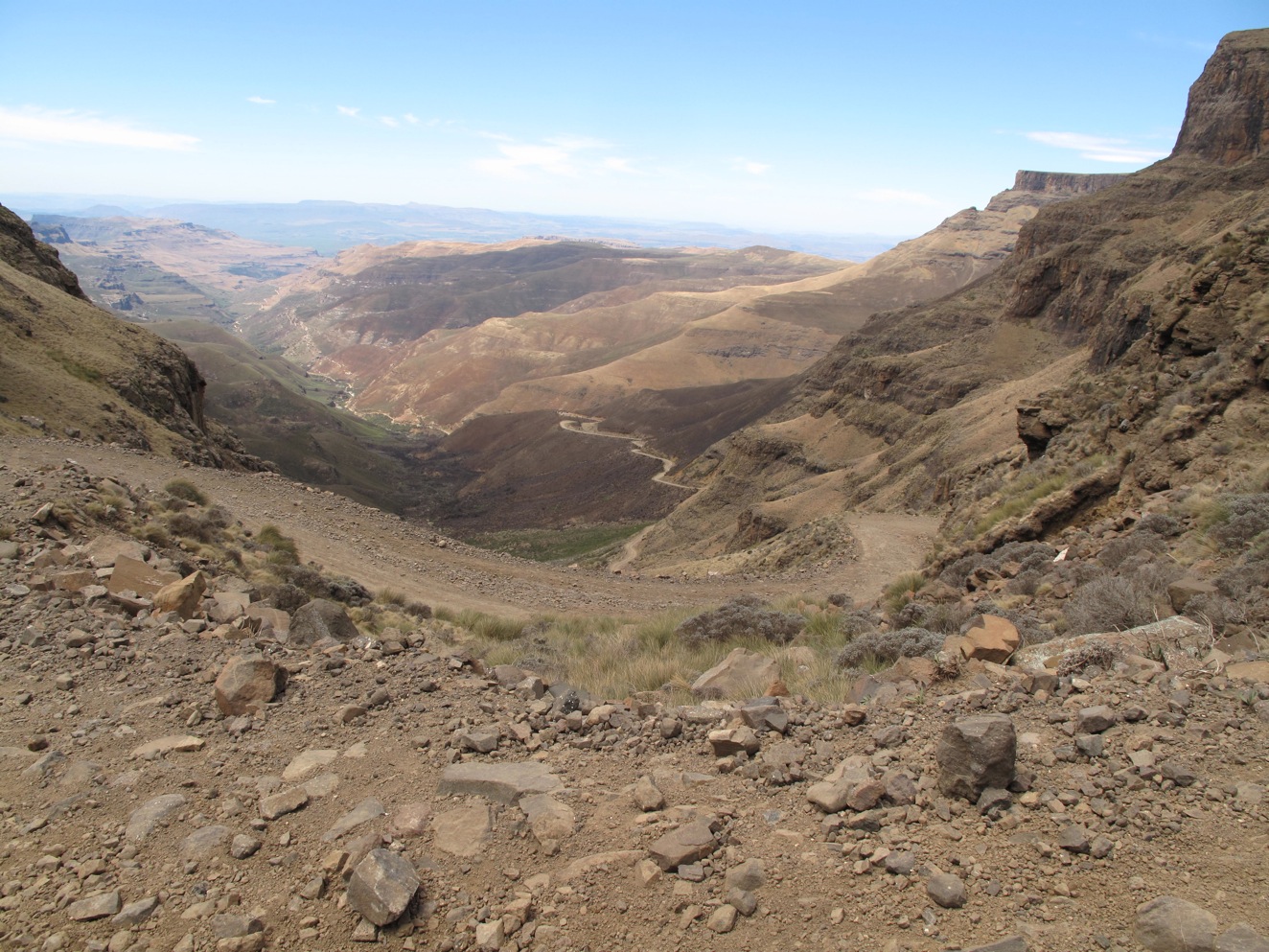 We entered through the top of Lesotho at the Butha Butha crossing. What you noticed as soon as you entered the country was how barren it seamed. Very rocky, chilly, and people walking around with blankets around them also wearing gumboots.
