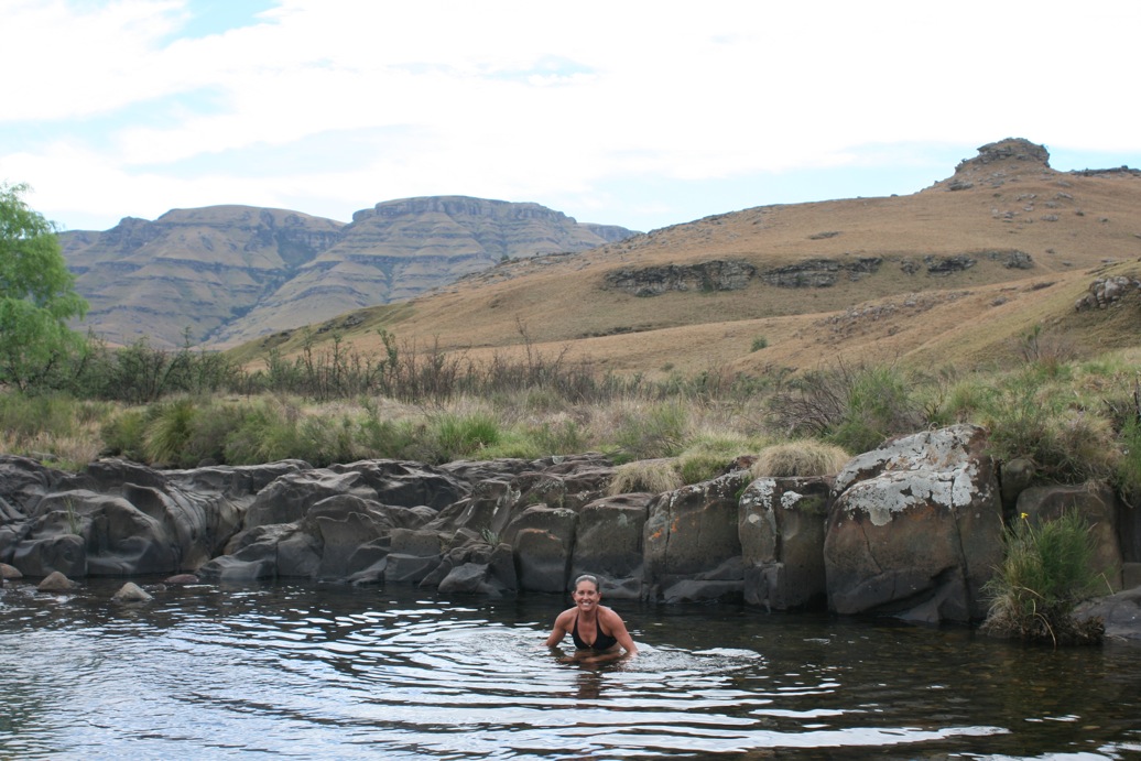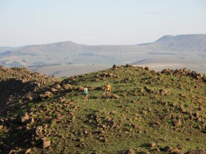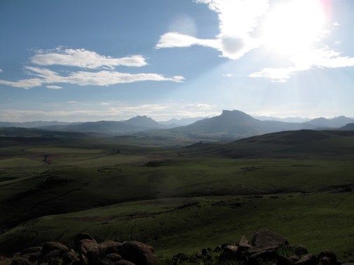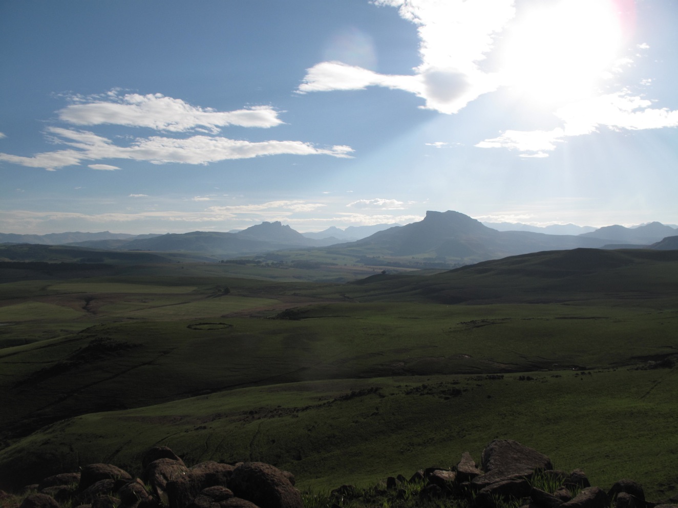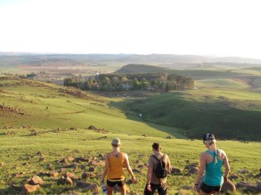 Khotso is a cozy farm house that offers backpacker accommodation, family lodging, plus all sorts of horse tours. The farm is run by Steve and Lulu, some of the warmest people who really make you feel at home. Steve is a hard core runner who raises money for the needy by running crazy distances. The last run he did was a 1000k run to raise funds for a special charity. 1000k! It took him around three weeks and running the distance close to a marathon eac day.It was too late for us to do a horse tour that day so we went for a short hike instead. Just out the back door of the lodge is a gate that leads to open pastures and rolling hills. We climbed up the highest hill for a nice view of the area. The landscape was stunning with miles of green grassy pastures and the Southern Draks in the distance. It was different from anywhere else we had been in South Africa.