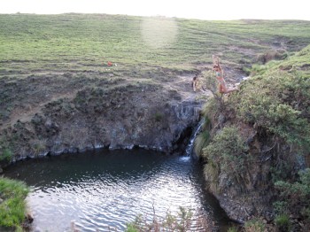 The sun beating down on our way back to the farm and it was HOT. We were sweating, our horses were sweating, and it was time to cool off. We got back to the farm were ready to find a hose to cool ourselves down. One of the staff members offered to give us a ride to the swimming hole. We all jumped in the truck, walked over to the pool of water and tried to decided wether to get in or not. The water looked really cold and the breeze was a little chilly. Kahi decided to go for it and after a little persuasion I followed shortly.