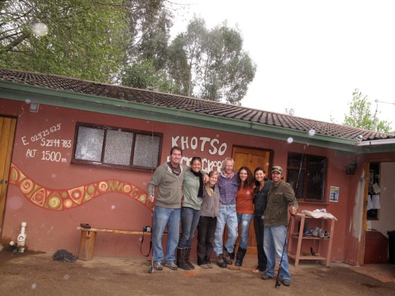 Todd, Kim, Cecelia, Steve, Lulu, Me and Kahi in front of Khotso Backpackers