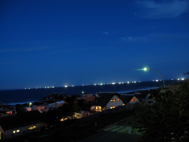 Nightime shot, the lights are all the calamari (chukka) boats.