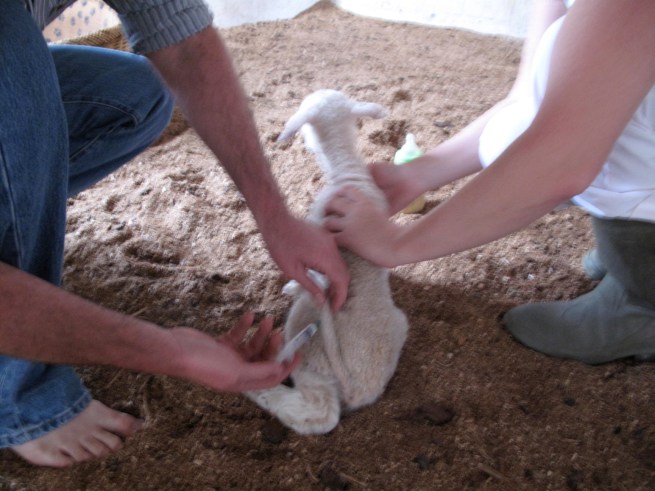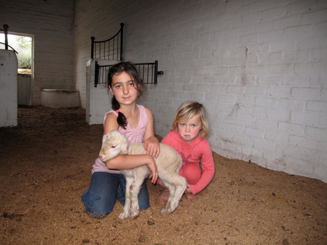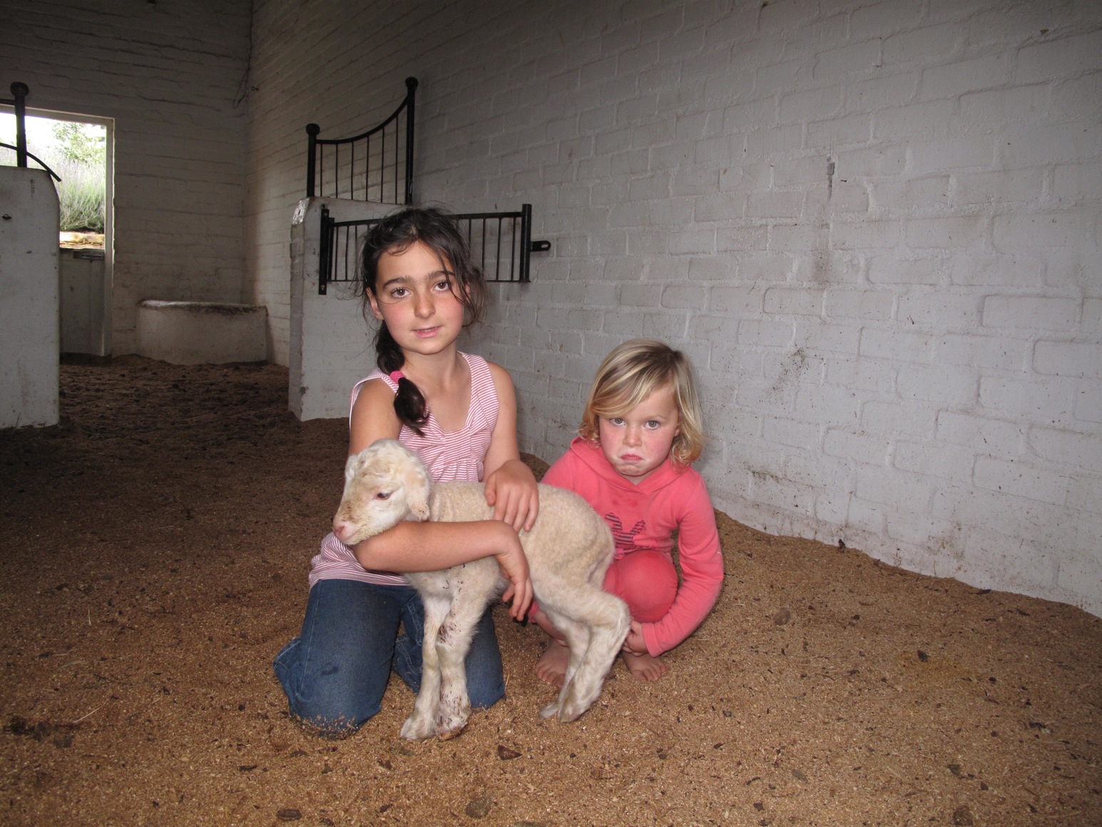 The baby lamb Catherine saved from imminent death. It had porcupine spines stuck in it. When she pulled them out the blood spurted everywhere. Here is Gemma holding the lamb and Bella giving her famous, “you need to speak with my agent to take a photo of me.”