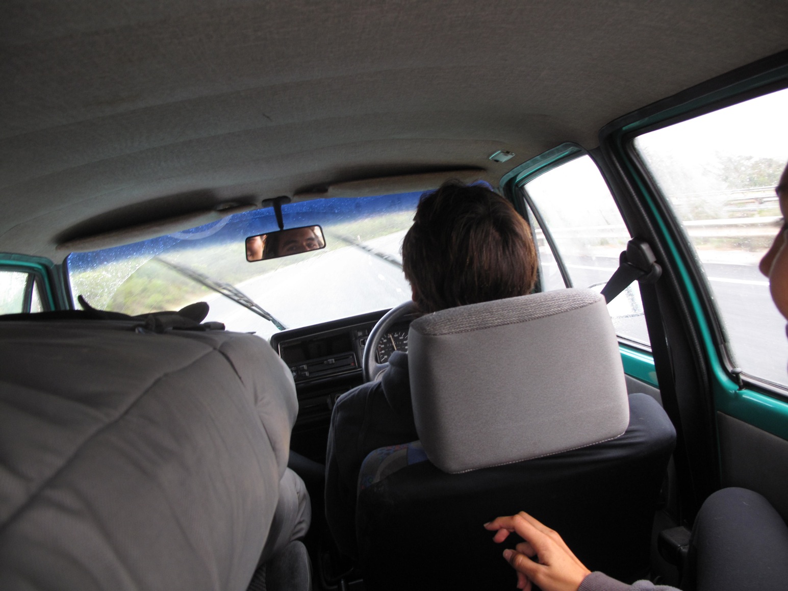 We took off a few days later. It was a rainy day and we had to stick all our surfboards in our car. Louise was stuck in the back since the boards took shotgun.