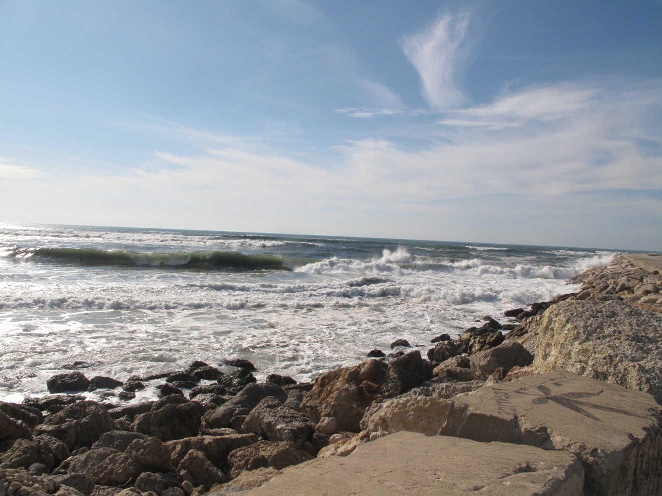 Rui took us on a tour of his local surf breaks. Some of them weren’t working but it was still awesome to check out the spots. We surfed a break that they called the J-bay of Portugal. At the moment it wasn’t working like J-Bay but we could see how it could with the right conditions. Another spot was next to a jetty with a strong current and huge dredging barrels. It looked like a board breaker to me so I went for a jog along the beach. The nice board walk ended and I ran down by the water. Didn’t know it was a nude beach and saw way too many portuguese sausages. haha! Traumatizing.