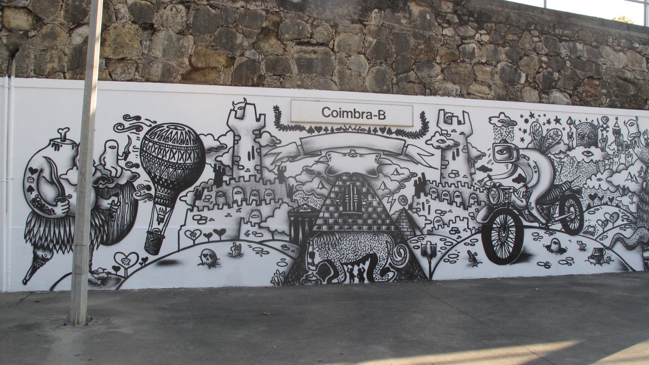 A sick mural at the Coimbra train station