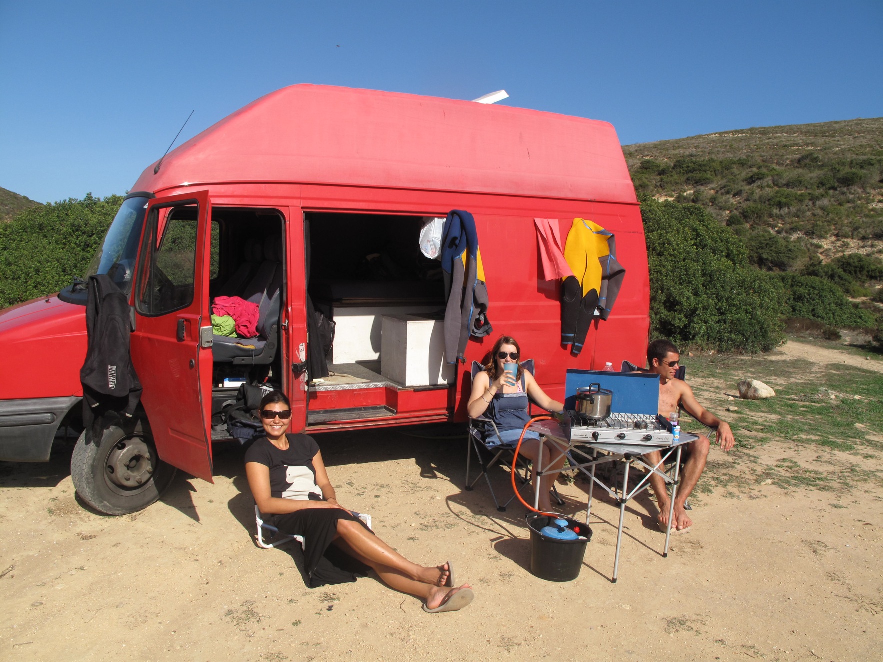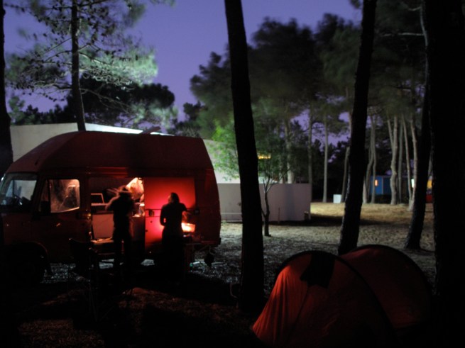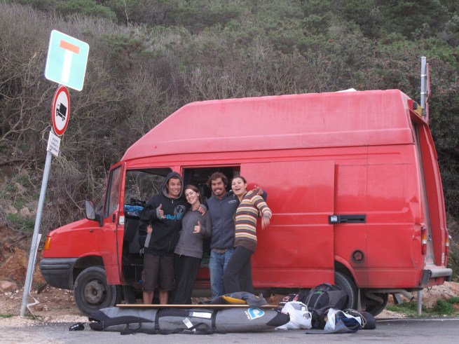 That night at the campsite in Sagres, a guy walked by me while I was washing the dishes with a Telluride jacket. I stopped him and asked him if he had ever been there. I spent a season in Telluride snowboarding my brains out, working at a fancy restaurant and teaching snowboarding. The guy happened to have been there for a few seasons but just after me. Coincidentally, Kyle was in Telluride with me and stayed a few additional seasons. Then I asked him what he did at Telluride and he said he worked snowboard park. Thats what Kyle did. I then asked him if he knew Kyle and he said yes, I then said, “well this is your lucky day, go over to that big red van over there and pop your head in.” The following reunion was a huge “WHAT THE HELL!” The guy (I forget his name) and Kyle were good mates while in Telluride and it was good for them to catch up. How awesome was that, the guy was from Bulgaria, Kyle from New Zealand, meet up in Portugal. They met in Telluride Colorado and it all worked out because (me) from Hawaii, who also used to work in Telluride happened to see his sweatshirt while washing dishes. How Cosmic. The guy was on a surf trip with about 6 other Bulgarians doing an article for an outdoor magazine back in Bulgaria.