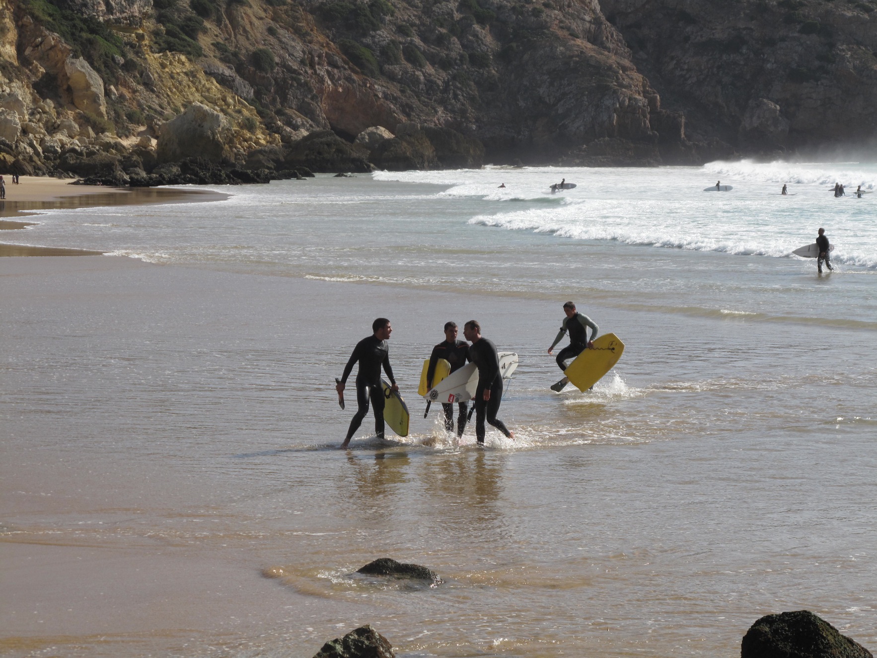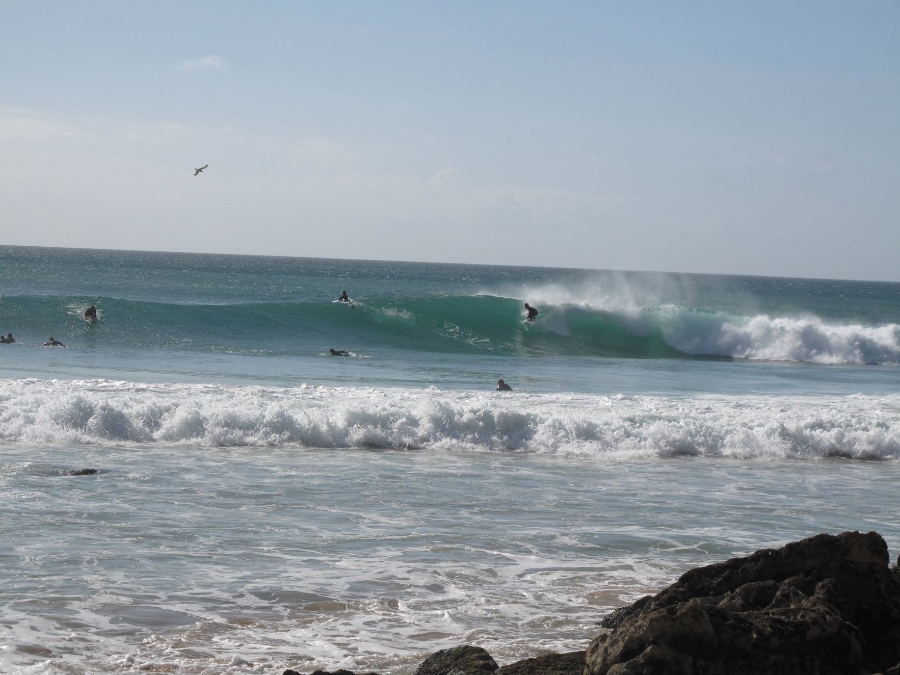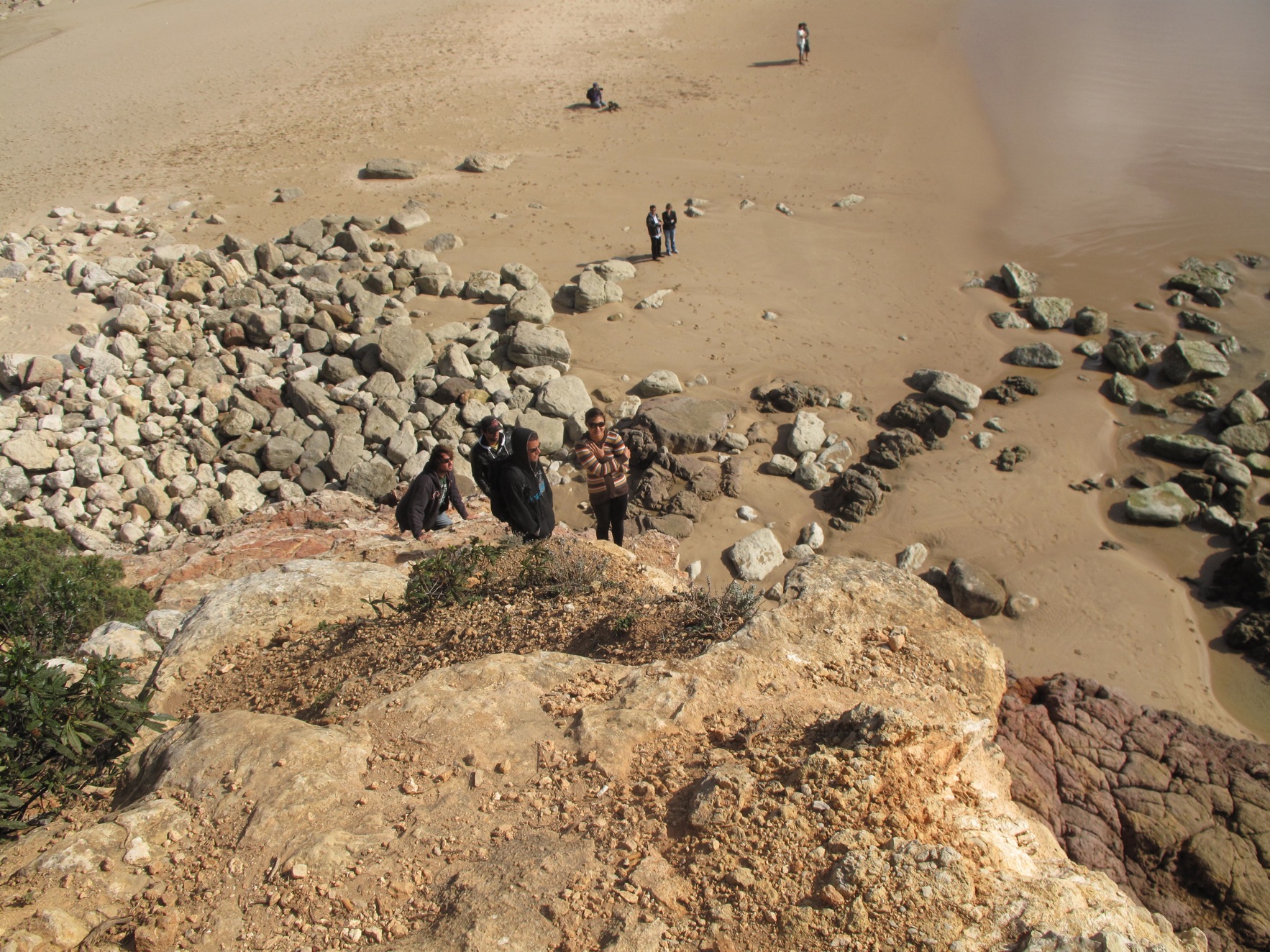 For the session in the afternoon we were watching up on the rocks when a dog came running by and accidentilly knocked a few pebbles off the ledge. Lucky for everyone on the cliff, the locals were down below. A pebble almost hit one of them and they went absolutely agro. They came running around the point and up the cliff on a war rampage yelling incoherently in portuguese. They pointed out three english guys and were cursing at them to leave and then they started speaking english blaming them for throwing rocks at them. The english guys tried to explain it was a dog but to no avail. They pushed one of the english guys who had a bum leg and we were standing on a cliff, it was really dangerous.