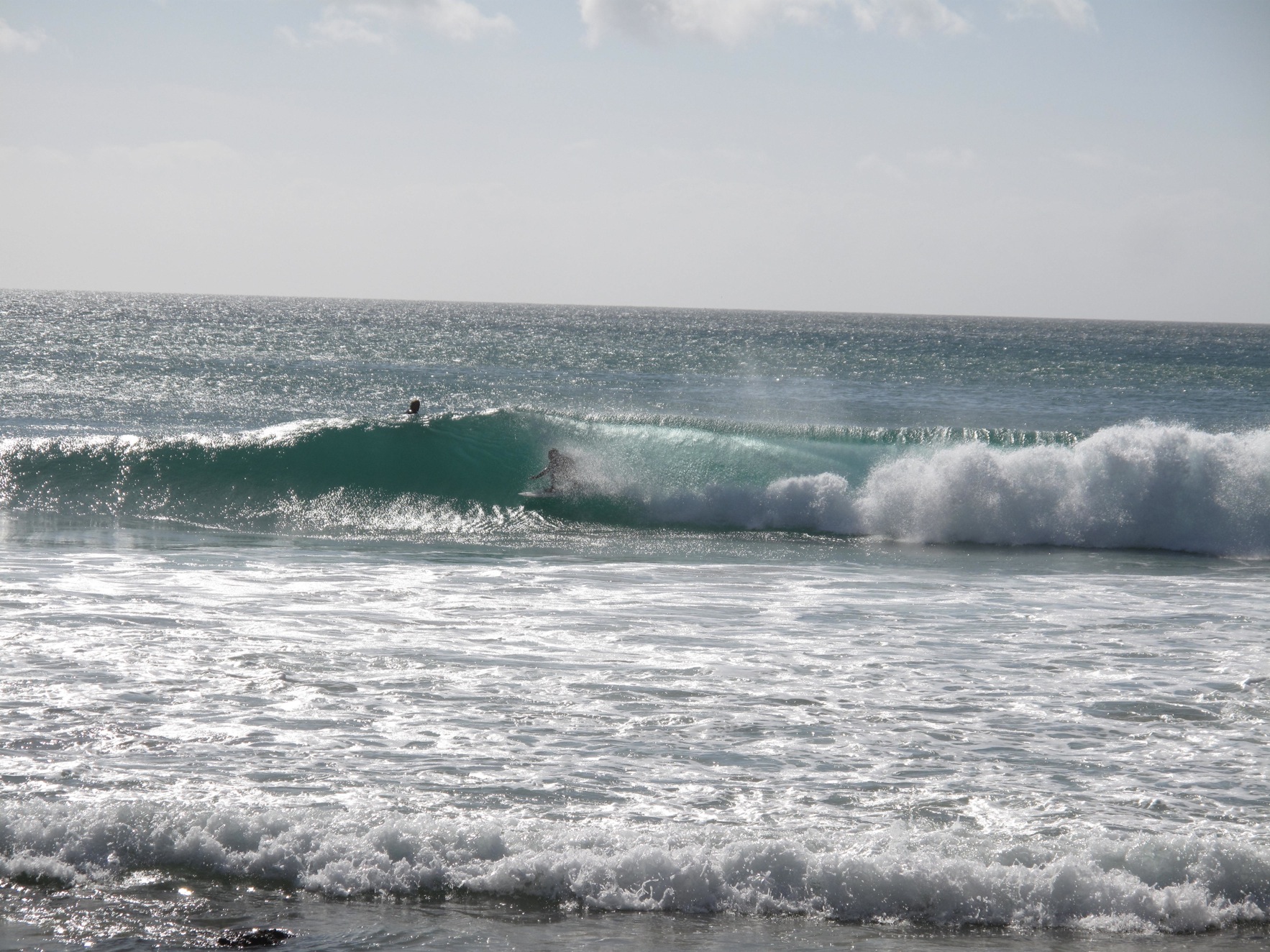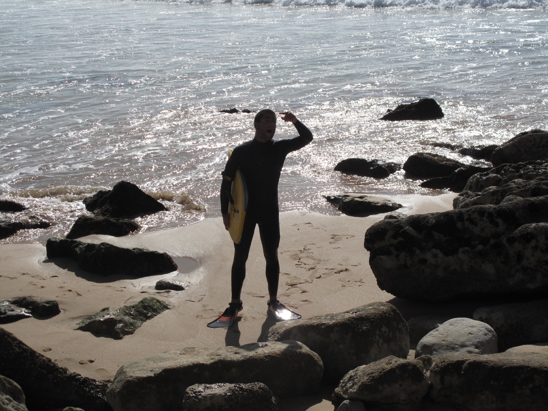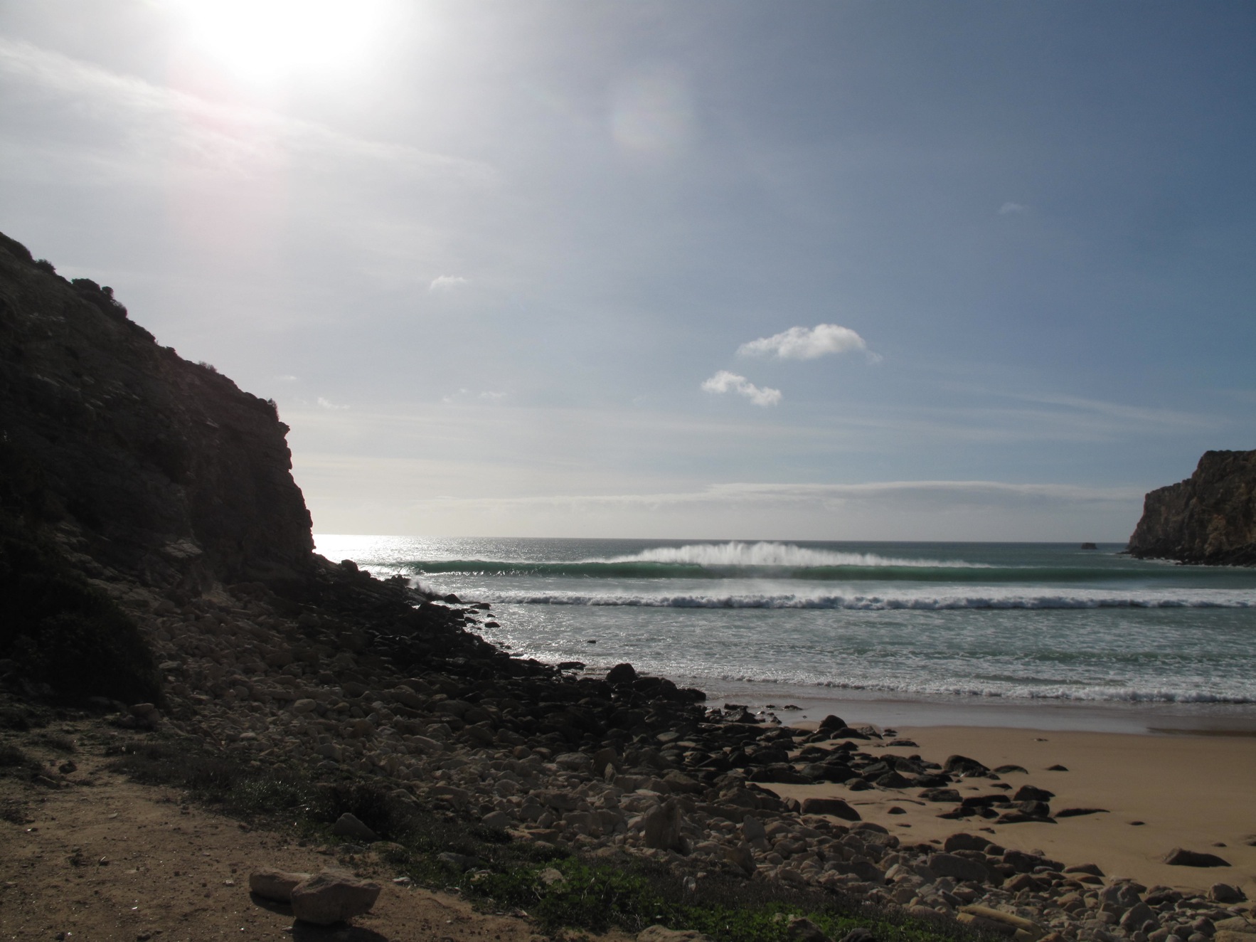 For the session in the afternoon we were watching up on the rocks when a dog came running by and accidentilly knocked a few pebbles off the ledge. Lucky for everyone on the cliff, the locals were down below. A pebble almost hit one of them and they went absolutely agro. They came running around the point and up the cliff on a war rampage yelling incoherently in portuguese. They pointed out three english guys and were cursing at them to leave and then they started speaking english blaming them for throwing rocks at them. The english guys tried to explain it was a dog but to no avail. They pushed one of the english guys who had a bum leg and we were standing on a cliff, it was really dangerous.