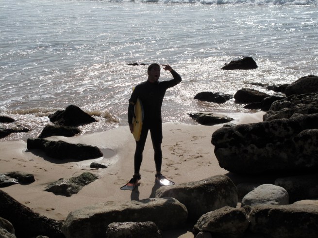 Rui (WHO HAPPENS TO BE THE COOLEST BODYBOARDER I HAVE EVER MET, sorry RUI to bag on your fellow boogers at Zavial) had decided to drive down that day to meet up with us for the afternoon session at Zavial. As we paddled out we saw Rui out in the pack with the dickheads, (not all of them were dickheads). He knew all the guys at the peak and when Louise and I paddled out Rui came over to say whats up and we caught up on the past week. When Rui went back to the pack they asked him, “You know that Mexican?” He just laughed and told them I was one HAWAIIAN. Actually Haolepino (half haole half filipino). My mustasche was in full swing and I was looking very banditotoish. Can’t blame them for their ethnic stereotype. The rest of the day was great (for us), no fights between us and the bodyboarders, and the waves were going off. The bodyboarder dickheads picked a fight with a surfer and sent him all the way to the beach and Kyle shot some picks of , Louise and I were trading off on the fish and the 6’3″ while the drama was in full swing scoring perfect waves.