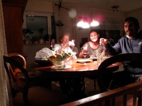 Diny, Kahi and I eating a delicious home cooked meal. One of Diny and Leo’s many cats.