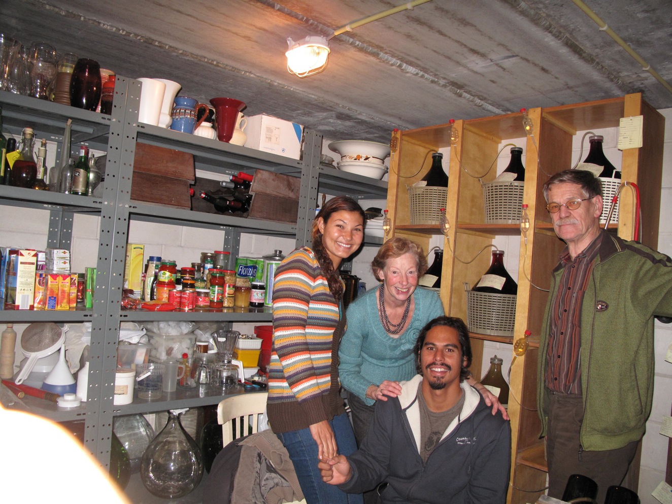Not only does Diny love to drink wine. She love to make it too! Diny , Kahi, Leo and I in her mini winery.